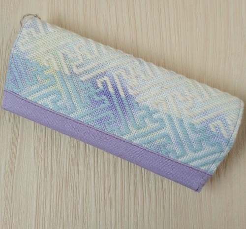 3500円(税込) マグネットボタンの蓋つき眼鏡ケースです。 ぼかし染めの生地に紗綾形のアレンジ模様を刺しました。 糸はパステルカラーを切り替えて明るい印象です。 お使いのモニタ・ディスプレイによって実際の色合い、風合いとは異なって表示されることがありますので、ご了承ください。 レターパックプラスにて発送いたします