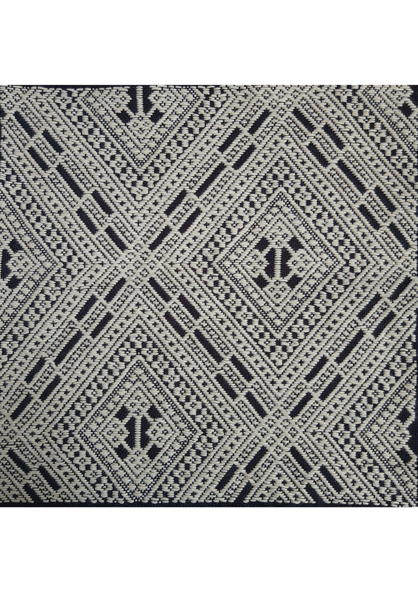 実際に刺したサンプルの写真は、津軽工房社製、綿こぎん布ペリープル30cm四方サイズに刺したものです。それほど大きくない範囲でも組み合わせた柄が繰り返し展開され、古作を刺している気分を楽しめる図案です。