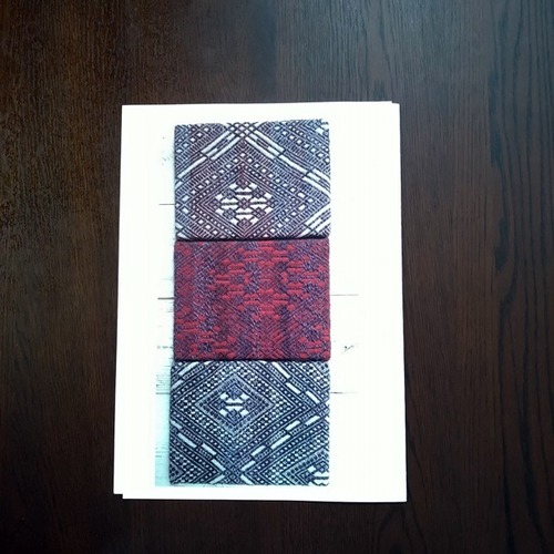 このcerisierオリジナルの図案は、核となる図案を中心に何層か拡大し、それが繰り返し現れる古作のデザインでありながら、現在の生地でも刺しやすい大きさに作ってあります。
