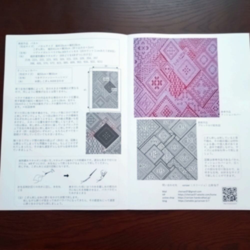 全体を一つのまとまった図案として刺すのはもちろん、図案の中からひとつの菱形を抜き取って他の作品に応用することもでき、図案利用のアレンジ幅がぐんと広がります。