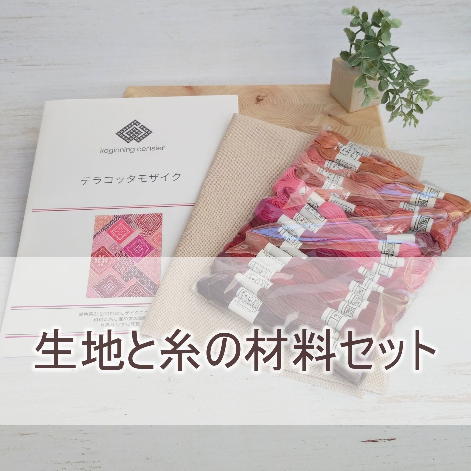 人気のこぎん刺し図案「ブルーモザイク」に続く第2弾、テラコッタモザイクの図案と材料のセットです。