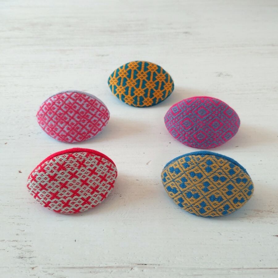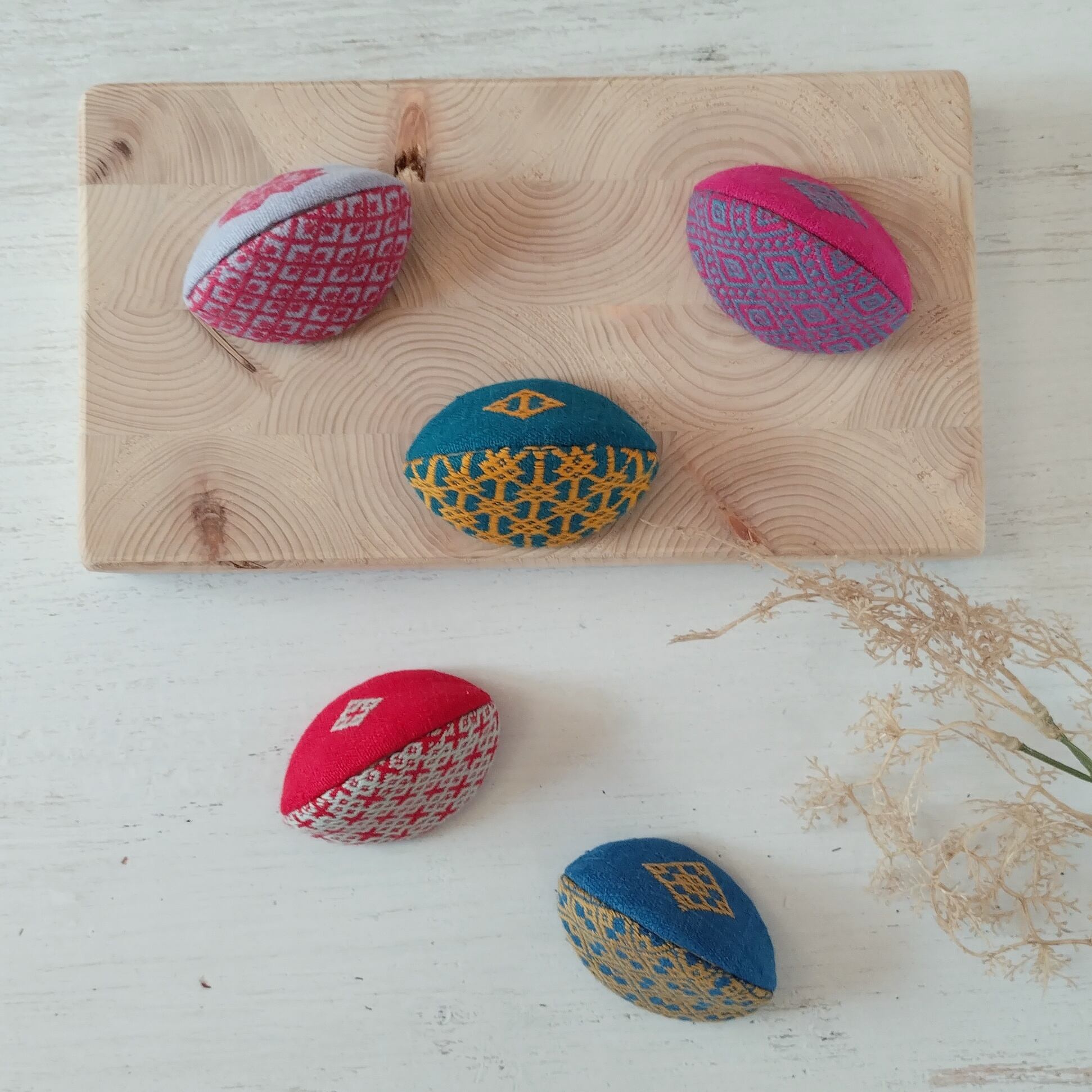 片面は一面にこぎんを総刺しにし、反対面はそこから切り取ったポイント柄を刺しました。