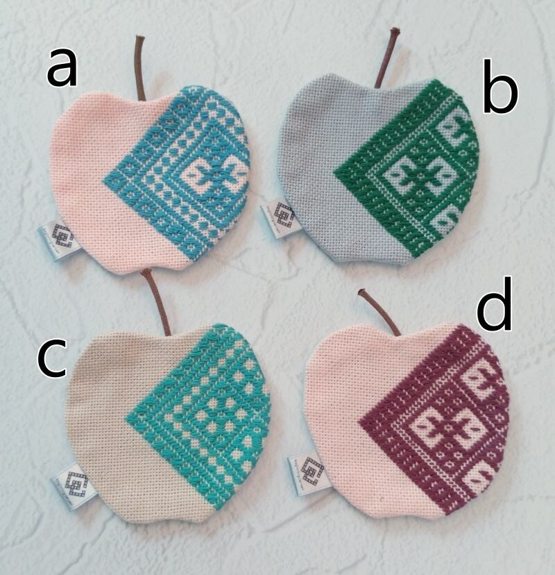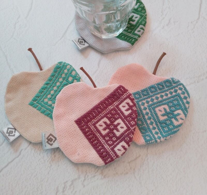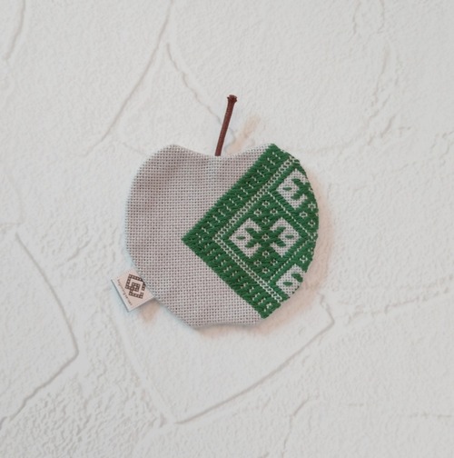 りんごをモチーフにした津軽民芸のこぎん刺しの可愛いコースター。
