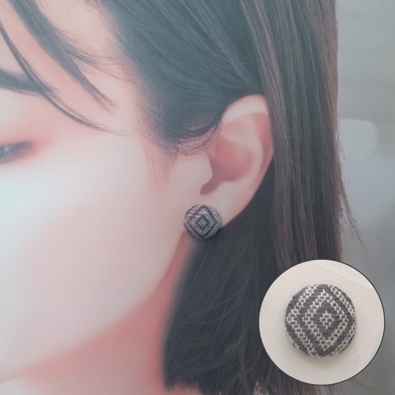 d ピアス 紫 うろこ/市松アレンジ シルバー金具
