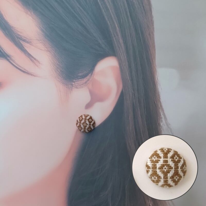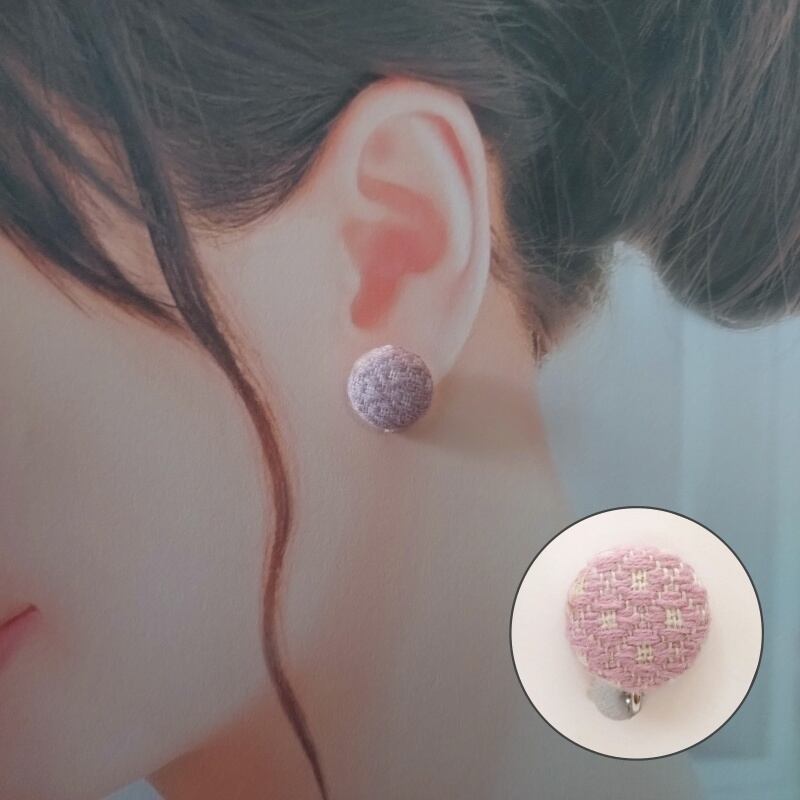 a イヤリング 淡ピンク 石畳/糸流れアシンメトリ シルバー金具