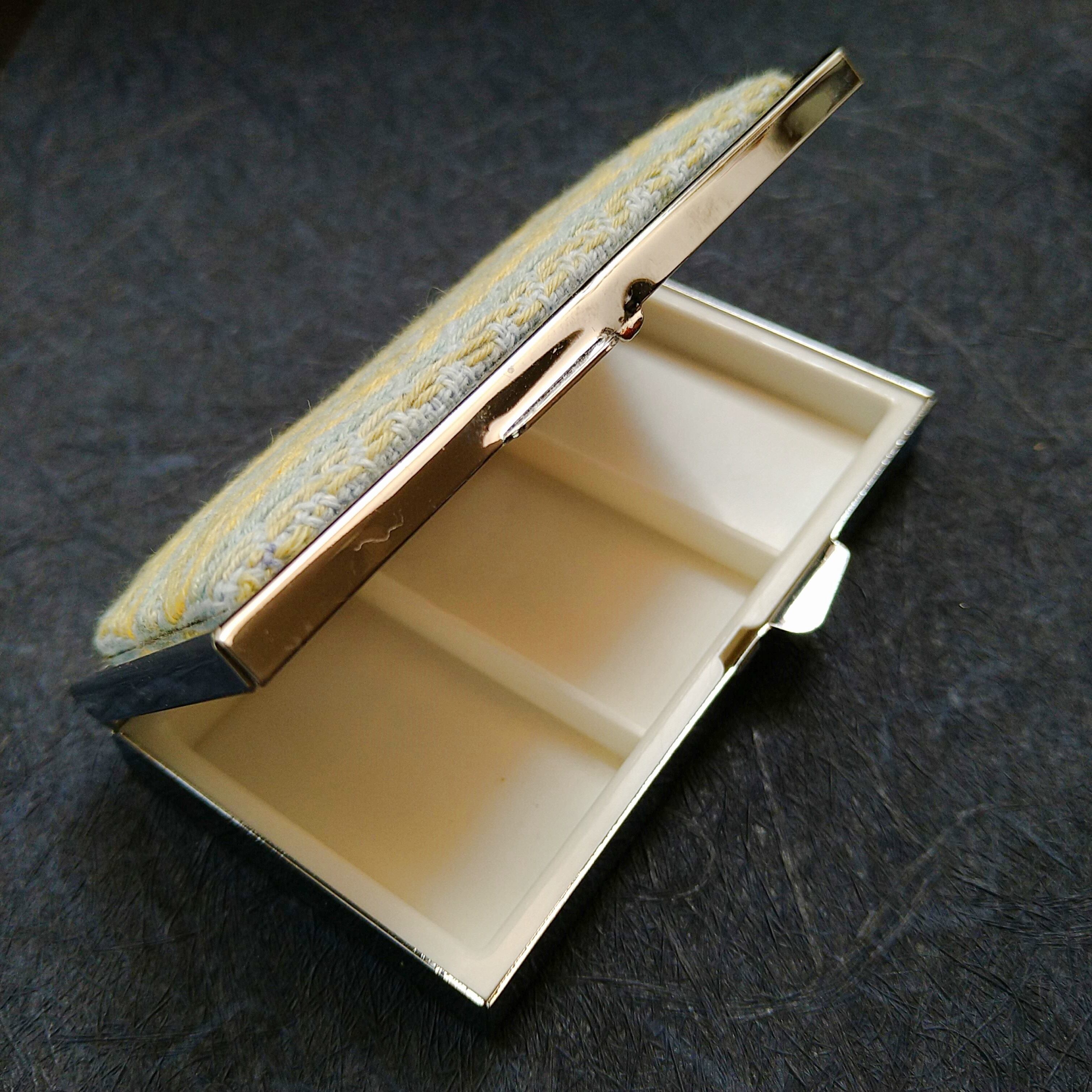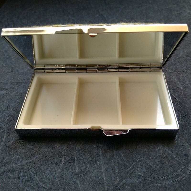 中は三つに仕切られ、蓋の内側はミラーになっています。