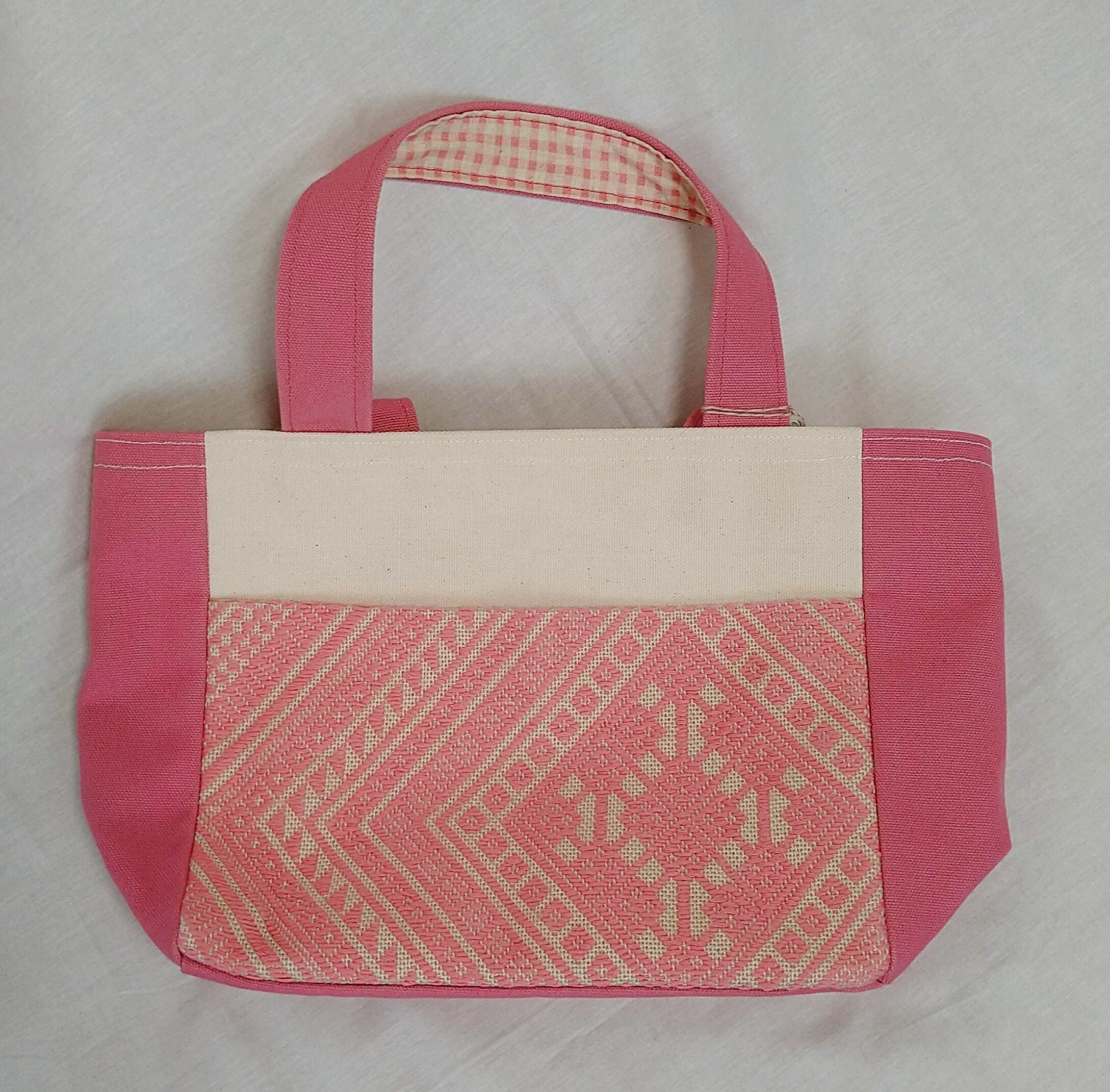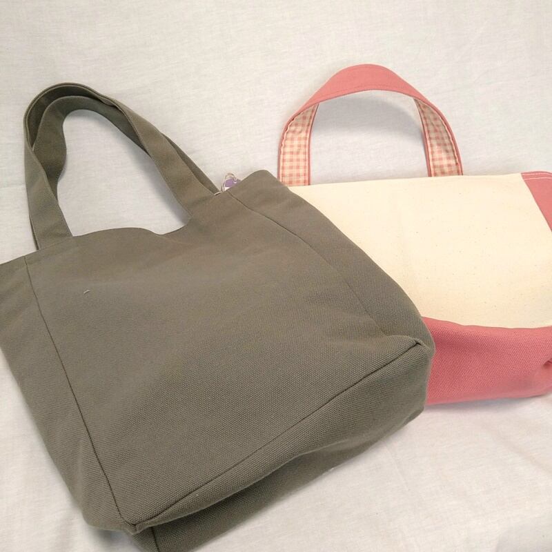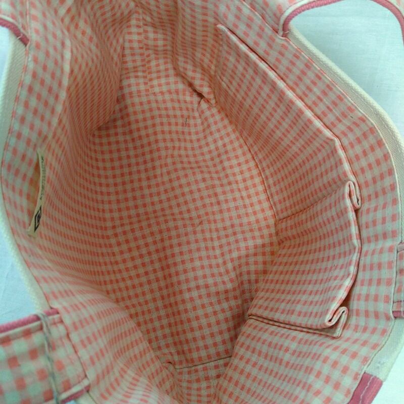バッグ本体は、正背面は生成色、脇底面はピンクの2カラーです。