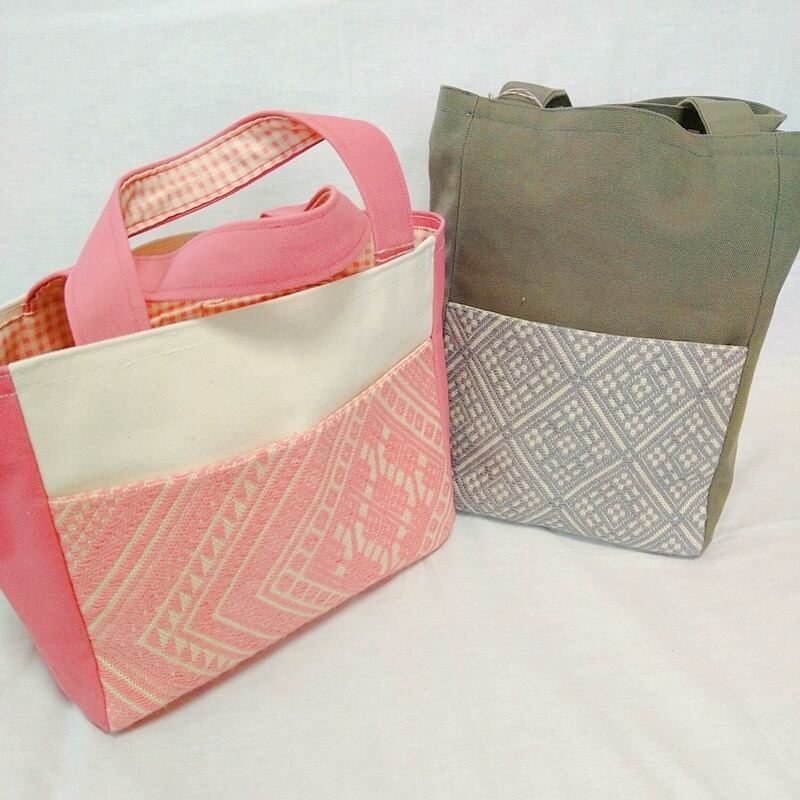 正面外側にこぎん刺しのポケットのついたトートバッグです。