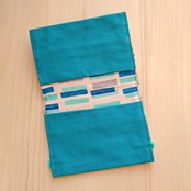 こぎん刺し部分 生地ー薄グレー、糸ーターコイズ 綿100%