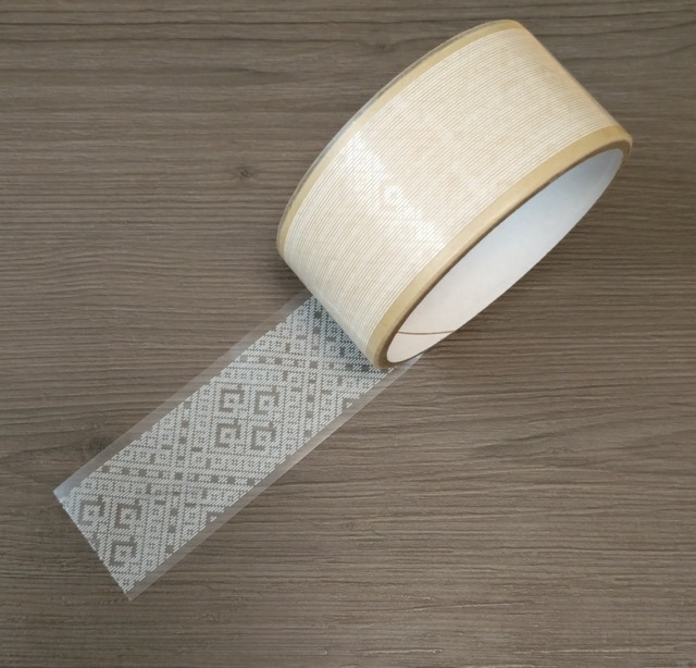 cerisierの「ce」を象ったオリジナルもどこの一つを使った古作風連続柄のOPPテープです。 ショップの梱包用に使用しているものですが、ご希望がありましたので販売いたします。 透明テープに白色印刷のデザインなので、カラーのものに貼ると未晒しの糸で刺したように見える配色になっております。 包装用テープ、ラッピングや、雑貨の装飾等にお使いください。 定形外郵便送料込みの価格です。 小ロット製作のため、価格が高くなっております。ご了承ください。 サイズ 幅38mm、全長10m 色 透明カラー×白色印刷 厚み 60µ 粘着力 7N/25mm(市販の養生用布テープと同程度) 芯 Φ約76mm(3インチ)
